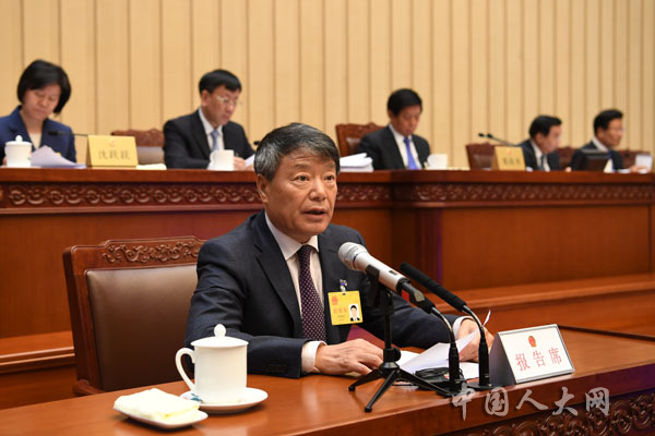10月22日下午,十三届全国人大常委会第六次会议举行第一次全体会议。全国人大财政经济委员会主任委员徐绍史作关于第十三届全国人民代表大会第一次会议主席团交付审议的代表提出的议案审议结果的报告。中国人大网 李杰摄