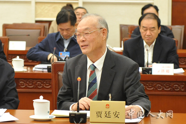 10月23日上午,十三届全国人大常委会第六次会议举行分组会,审议刑事诉讼法修正草案,人民法院组织法修订草案,人民检察院组织法修订草案,国际刑事司法协助法草案,综合性消防救援队伍消防救援衔条例草案。图为全国人大常委会委员贾廷安在分组会上发言。中国人大网 冯涛 摄