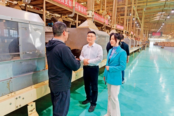 黄蕾代表(右)在企业车间调研。(代表供图)