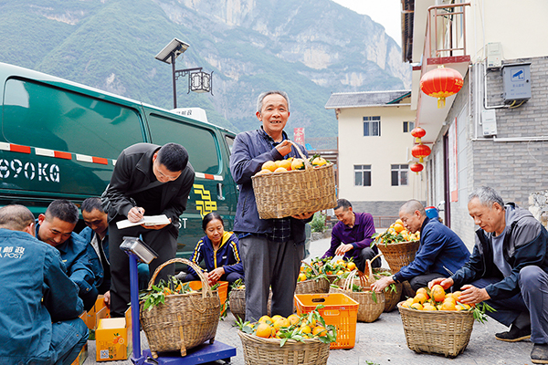 20多年前,毛相林带领村民用了7年时间,在悬崖绝壁上建起一条8公里长的出山“天路”,打通了下庄村与外界的通道。在毛相林看来,路通了,产业必须跟上,才能真正拔掉穷根。为此,他带着村干部进县城入村寨、请专家问教授,最终摸索出“橙色”纽荷尔脐橙、“蓝色”劳务输出、“绿色”农文旅融合为主的“三色”经济路径。