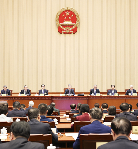 4月30日上午,十四届全国人大常委会第十五次会议在北京人民大会堂闭幕。赵乐际委员长主持闭幕会。新华社记者 庞兴雷 摄