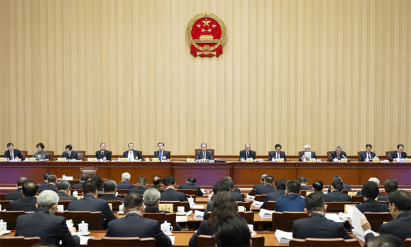 会议听取了全国人大民族委员会主任委员巴音朝鲁、宪法和法律委员会主任委员信春鹰、财政经济委员会主任委员钟山、教育科学文化卫生委员会主任委员雒树刚、华侨委员会主任委员于伟国分别作的关于十四届全国人大二次会议主席团交付审议的代表提出的议案审议结果的报告。