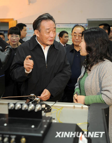 3月31日至4月3日,中共中央政治局常委、全国人大常委会委员长吴邦国在湖北省调研。这是4月2日,吴邦国在武汉光电国家实验室与研究人员交谈。新华社记者马占成摄