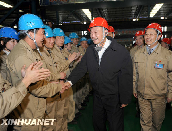 3月31日至4月3日,中共中央政治局常委、全国人大常委会委员长吴邦国在湖北省调研。这是3月31日,吴邦国在武汉钢铁(集团)公司调研。新华社记者马占成摄