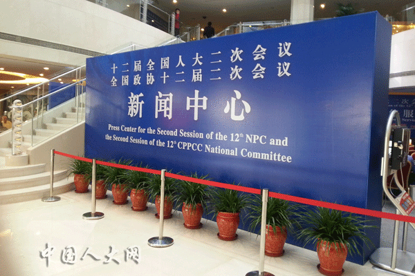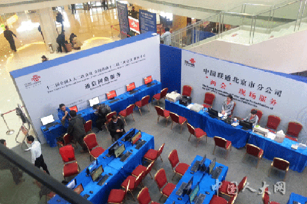 2月26日,设在北京梅地亚中心的2014年全国两会新闻中心正式启用,中心工作人员开始接待和安排中外记者采访。中国人大网 冯涛 摄