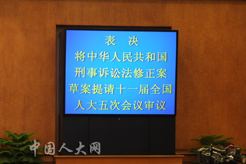 表决将中华人民共和国刑事诉讼法修正案草案提请十一届全国人大五次会议审议