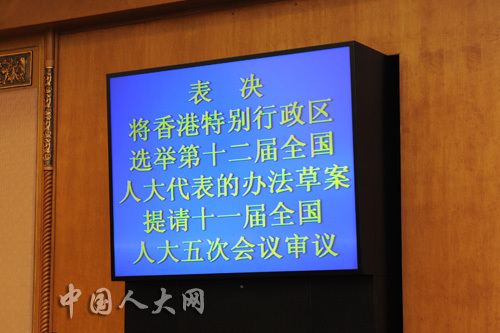 表决将香港特别行政区选举第十二届全国人大代表的办法草案提请提请十一届全国人大五次会议审议
