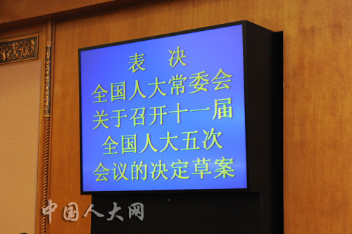 表决全国人大常委会关于召开十一届全国人大五次会议的决定草案