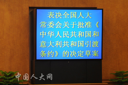 表决全国人大常委会关于批准《中华人民共和国和意大利共和国引渡条约》的决定草案