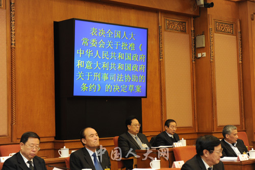 表决全国人大常委会关于批准《中华人民共和国政府和意大利共和国政府关于刑事司法协助的条约》的决定草案