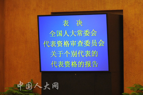 表决全国人大常委会代表资格审查委员会关于个别代表的代表资格的报告