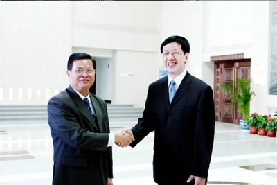 曹建明检察长会见老挝最高人民检察院检察长宋潘·平坎米。徐伯黎摄