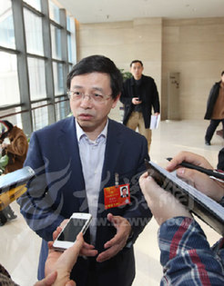 十二届全国人大代表、济宁市委副书记、市长梅永红谈大部制改革。(盛堃 摄)
