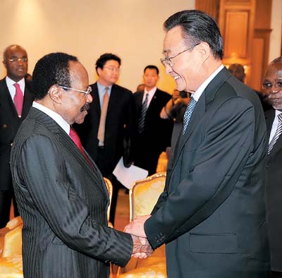 吴邦国说,中加两国传统友好。2004年,胡锦涛主席成功访加,使中加关系进入了快速发展时期。中方感谢邦戈总统和加蓬政府在关系中国核心利益等重大问题上给予的一贯坚定支持。明年将迎来中加建交35周年,中方愿以此为契机,不断增进两国人民的相互了解和友谊,切实加强各层次各领域的交流与合作,密切在重大国际和地区问题上的协调与配合。吴邦国指出,经贸合作是两国友好关系的物质基础,也是两国领导人高度重视的问题。中加经济互补性强,互利合作潜力大。中方愿与加方通力合作,把双方经济互补优势转化为经贸合作成果,更好地造福两国人民。希望双方坚定信心,密切配合,加快矿产开发、水电站和体育场建设等大项目前期工作的进度,争取尽快启动,使这些大项目成为中加经贸合作新的亮点和增长点。中方鼓励和支持中国有实力的企业与加方开展务实合作,并在技术转让上采取开放政策,尽可能地为加方创造更多的就业岗位,培训管理和技术人员。两国政府及有关部门应从中加关系大局出发,本着互利互惠、合作共赢的原则,及时协调和解决大项目实施过程中遇到的问题,确保项目顺利实施。