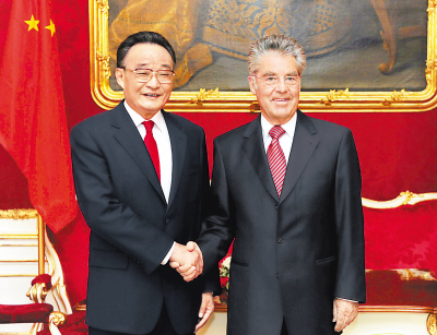 吴邦国说,中奥建交38年来,两国关系总体发展良好,各领域交流与合作不断深化,给两国人民带来实实在在的利益。他强调,中方高度重视发展与奥地利的关系,愿与奥方在相互尊重、平等互利原则基础上,加强政府、议会和政党之间的友好交往,增进相互了解和信任,深化各领域务实合作,密切在国际事务中的沟通协调,不断开拓双边关系新局面。