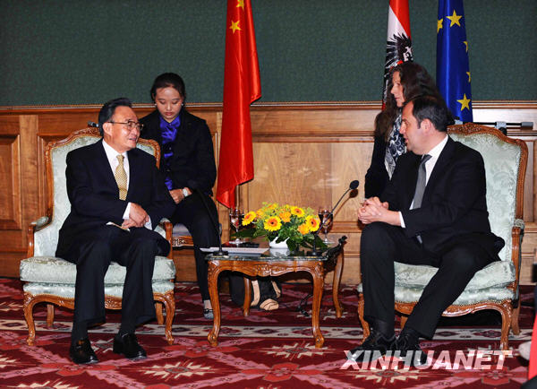 吴邦国说,国际金融危机对世界各国经济都造成了严重影响,对此中国政府及时作出分析判断,并采取一系列保持经济平稳较快发展的政策措施,实施一揽子计划,取得了初步成效。但我们也清醒地看到,中国经济发展方式总体上还是粗放型的,我们要把市场压力变为调整动力,把解决当前困难和长远发展结合起来,着力调整经济结构,转变经济发展方式,实现可持续发展。中奥经济互补性强,中国有巨大的市场,奥地利在许多领域拥有先进的技术,中国的发展为扩大中奥经济技术合作提供了更大的舞台。中方愿与奥方加强在节能、环保、水利、生态农业、汽车零部件、清洁能源等方面的互利合作,培育新的合作增长点,鼓励双方企业从对方国家采取的刺激经济增长的政策措施中寻找新的合作机会。希望两国政府为双方人员往来、企业合作、商务活动等创造条件、提供便利。