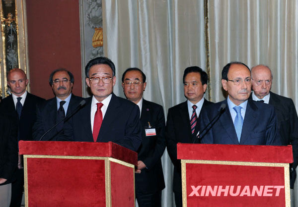 吴邦国与意大利参议院议长共同会见记者