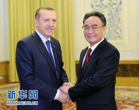 新华网北京4月10日电(记者 刘东凯)全国人大常委会委员长吴邦国10日在人民大会堂会见土耳其总理埃尔多安。