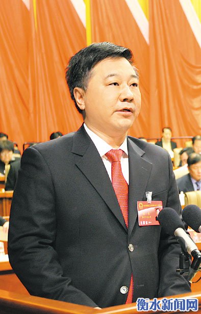 二月十一日,衡水市第五届人民代表大会第二次会议在衡水会堂开幕。图为市长杨慧作政府工作报告。