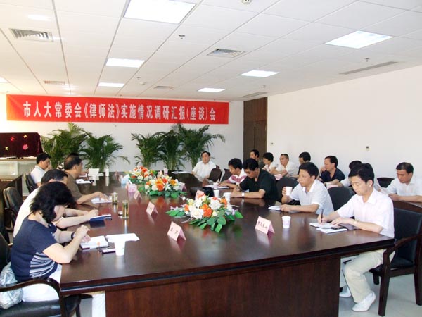 会议听取了我市律师队伍建设、依法执业、履行法律援助等情况汇报。各相关部门和部分律师结合自身的工作特点,座谈了《律师法》的实施情况。据了解,我市现有律师事务所26家,法律援助中心9家,共35家律师执业机构,市直、五县三区(除开发区)各有1家法律援助中心,共9家法援中心。今年已注册执业律师261人,其中法律援助律师31人。
