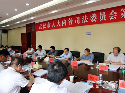 9月12日上午,市人大内务司法委员会第八次全体会议在市公安局交通管理局召开。会议分别审议了市人民政府关于提请审议《武汉市实施〈中华人民共和国道路交通安全法〉办法》的议案,市中级人民法院、市人民检察院关于贯彻落实新修订的民事诉讼法工作情况的报告,市中级人民法院、市人民检察院、市公安局关于2012年度办案质量检查情况的报告。市人大常委会党组副书记、副主任胡绪鹍参加会议并讲话。