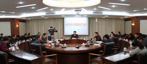 11月18日,市人大常委会主任、党组书记陈延荣主持召开市人大常委会党组(扩大)会议,传达学习党的十八届三中全会精神。他强调,要解放思想、凝聚共识,坚决拥护改革,积极支持改革,自觉投身改革,要坚持与时俱进,加强和改进新时期的人大工作,为全面深化改革营造良好的民主法治环境。