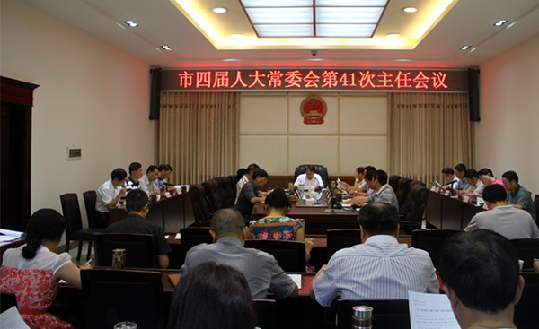 7月21日下午,市四届人大常委会第41次主任会议在市人大常委会机关一楼会议室举行,市人大常委会主任陆振华主持本次会议。