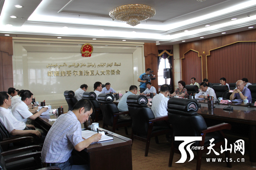 自治区人大常委会党组书记、主任雪克来提扎克尔主持会议并讲话。他强调,党的十八大以来,习近平总书记就推进依法治国方略、建立社会主义法治国家发表过多次讲话,要求以宪法为统帅,坚持依法治国、依法执政、依法行政与法治国家、法治政府、法治社会共同推进、一体建设。就新疆而言,当前发展势头良好、社会大局稳定,但稳中有变数、稳中有风险、稳中有忧虑。为此,法治中国建设在新疆的实践就显得尤为迫切和重要。