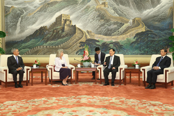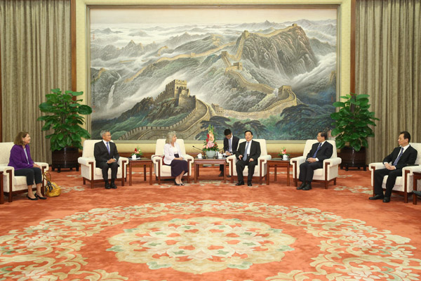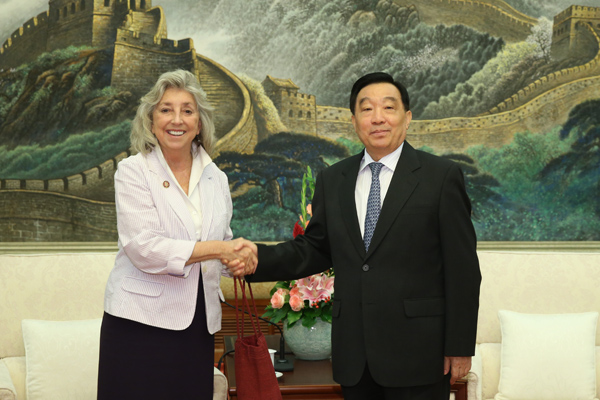 8月20日上午,中共中央政治局委员、全国人大常委会副委员长王晨在京会见美国联邦众议员泰特斯、柯克帕特里克、洛温塔尔一行。