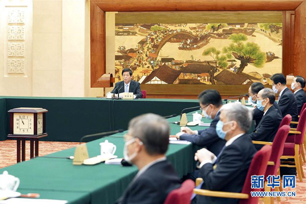 4月28日上午,十三届全国人大常委会第五十一次委员长会议在北京人民大会堂举行,栗战书委员长主持会议。新华社记者 刘卫兵 摄
