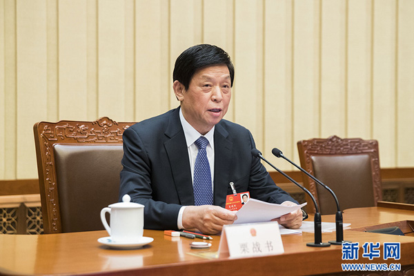 5月21日晚,十三届全国人大三次会议主席团在北京人民大会堂举行第一次会议。全国人大常委会委员长栗战书主持会议。新华社记者 黄敬文 摄