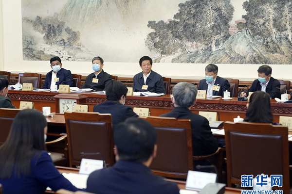 10月14日,十三届全国人大常委会第二十二次会议在北京举行分组会议,审议国旗法修正草案、国徽法修正草案、选举法修正草案、长江保护法草案等。栗战书委员长参加审议。 新华社记者 刘卫兵 摄
