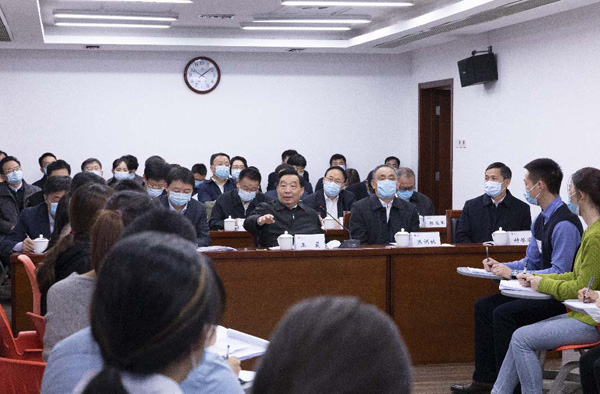 11月25日,中共中央政治局委员、全国人大常委会副委员长、中国法学会会长王晨在清华大学调研。戎珊 摄