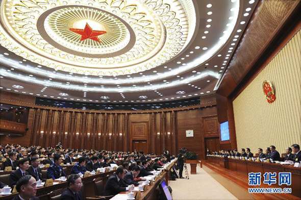 3月19日,十二届全国人大常委会第一次会议在北京人民大会堂举行。全国人大常委会委员长张德江主持会议并发表重要讲话。 新华社记者饶爱民摄