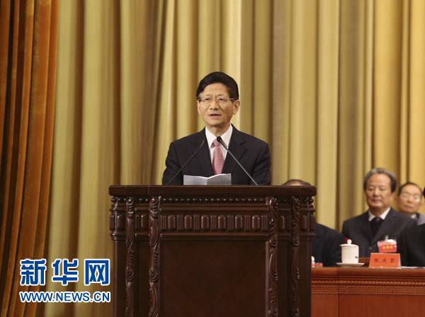 11月29日,中国法学会第七次全国会员代表大会在北京人民大会堂开幕。中共中央政治局委员、中央政法委书记孟建柱受习近平总书记委托代表党中央发表题为《积极投身法治中国建设的伟大实践》的祝词。新华社记者丁林摄