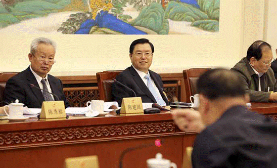 2013 年10 月21 日,十二届全国人大常委会第五次会议在北京举行分组会议,审议消费者权益保护法修正案草案等。张德江委员长参加审议。摄影/ 丁林
