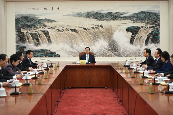1月22日下午,十二届全国人大常委会第一百零八次委员长会议在北京人民大会堂举行。张德江委员长主持会议。