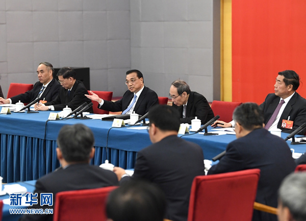 3月4日,中共中央政治局常委、国务院总理李克强看望出席全国政协十三届二次会议的民建、工商联界委员并参加讨论。 新华社记者 饶爱民 摄
