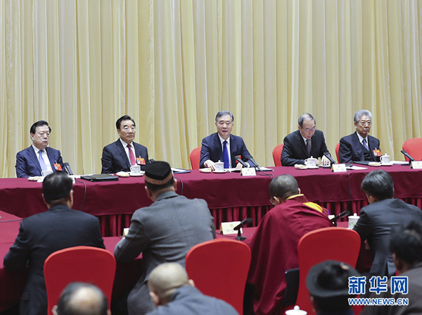3月4日,中共中央政治局常委、全国政协主席汪洋看望出席全国政协十三届二次会议的宗教界委员并参加讨论。 新华社记者 姚大伟 摄