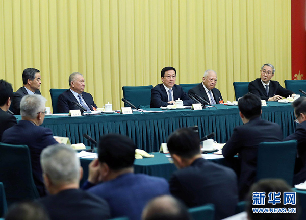 3月4日,中共中央政治局常委、国务院副总理韩正看望出席全国政协十三届二次会议的港澳地区全国政协委员并参加讨论。 新华社记者 刘卫兵 摄