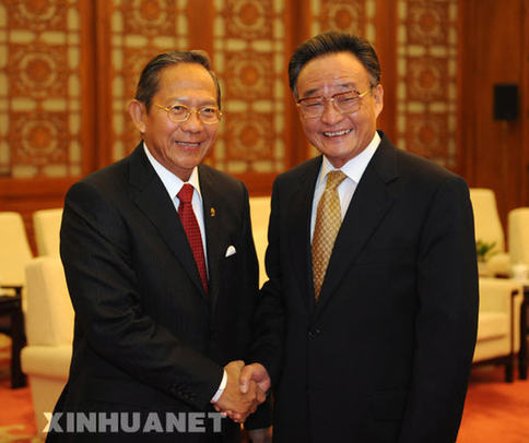 12月22日,全国人大常委会委员长吴邦国在北京人民大会堂会见印尼地方代表理事会主席吉南亚尔。新华社记者刘建生摄
