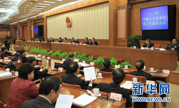 12月26日,十一届全国人大常委会第二十四次会议在北京人民大会堂举行第一次全体会议。吴邦国委员长主持会议。 新华社记者樊如钧 摄