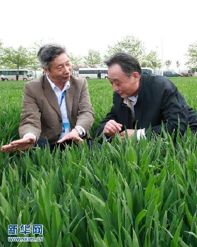 4月12日至17日,中共中央政治局常委、全国人大常委会委员长吴邦国在河南调研。这是4月14日,在位于新乡市的河南省现代农业研究开发基地,吴邦国走进试验田查看良种小麦长势。新华社记者 庞兴雷 摄