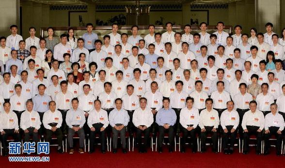 9月3日,第十八次全国地方立法研讨会在北京召开。会前,中共中央政治局常委、全国人大常委会委员长吴邦国在人民大会堂会见全体与会代表,并与他们合影留念。新华社记者丁林 摄
