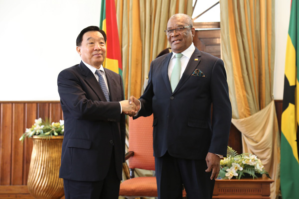 中共中央政治局委员、全国人大常委会副委员长王晨6月7日在圣多美和普林西比会见圣普总统卡瓦略。