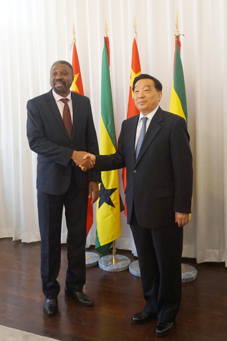 圣多美和普林西比总统卡瓦略、总理热苏斯分别会见王晨