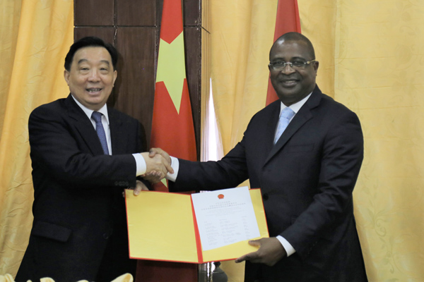 中共中央政治局委员、全国人大常委会副委员长王晨6月6日在圣多美和普林西比与圣普国民议会议长内韦斯举行会谈。
