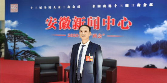 全国人大代表、安徽省池州市贵池区梅村镇霄坑村党委书记、村委会主任王建伟在讲话。(王建伟供稿)