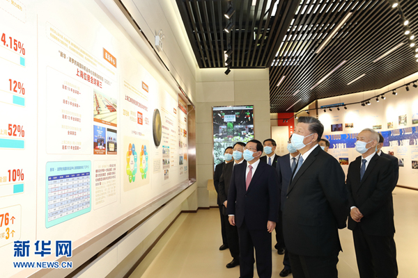 11月12日,浦东开发开放30周年庆祝大会在上海市举行。中共中央总书记、国家主席、中央军委主席习近平在会上发表重要讲话。这是当天上午,习近平等参观“在国家战略的引领下——浦东开发开放30周年主题展”。新华社记者 鞠鹏 摄