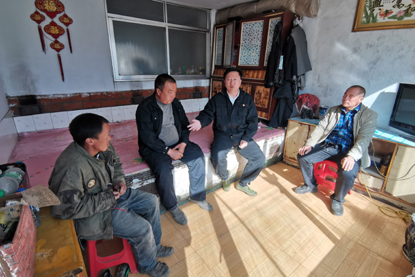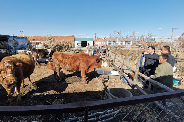 翟友财(左二)帮助困难群众发展肉牛养殖。(代表供图)